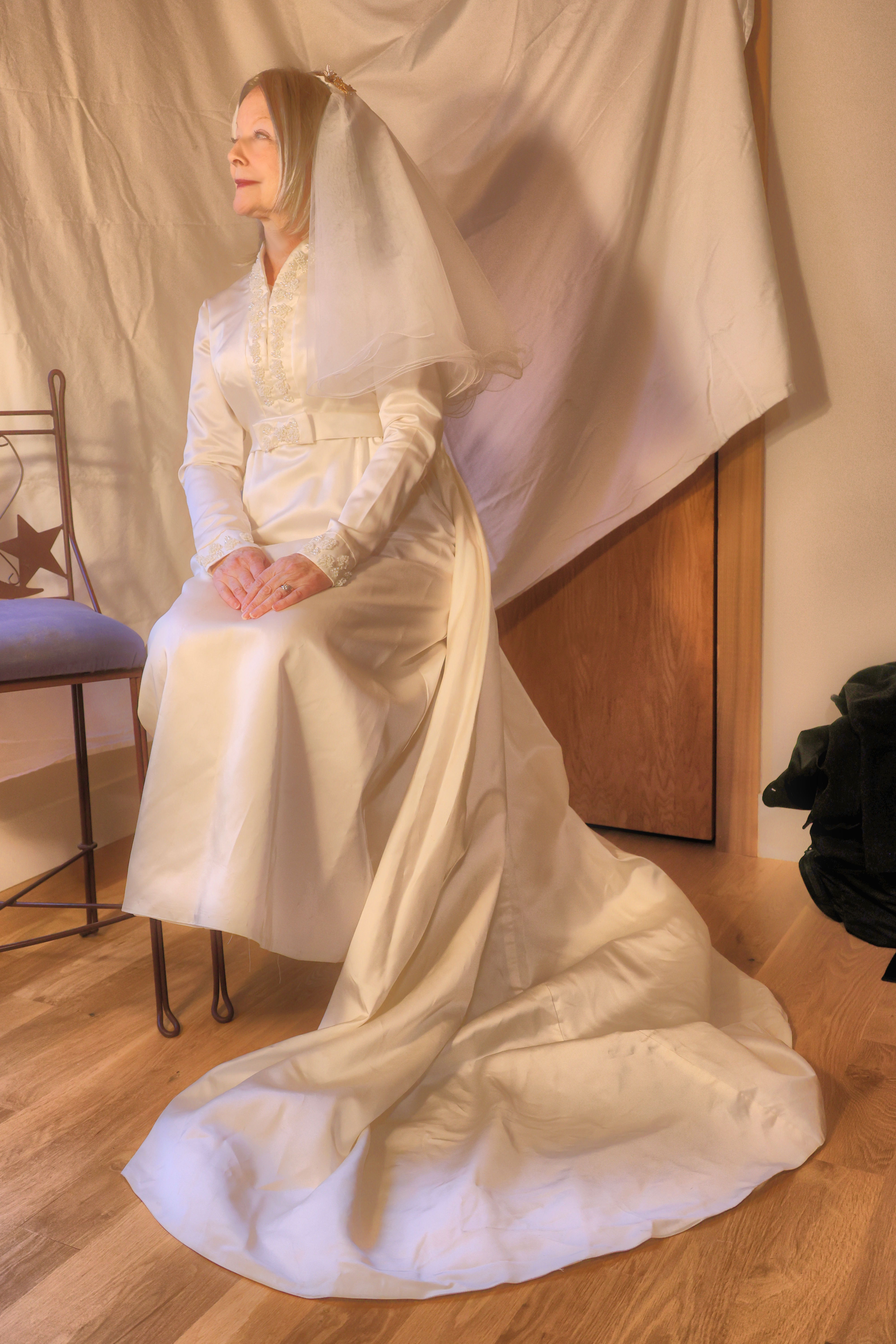 Nancy getting ready to throw the bouquet